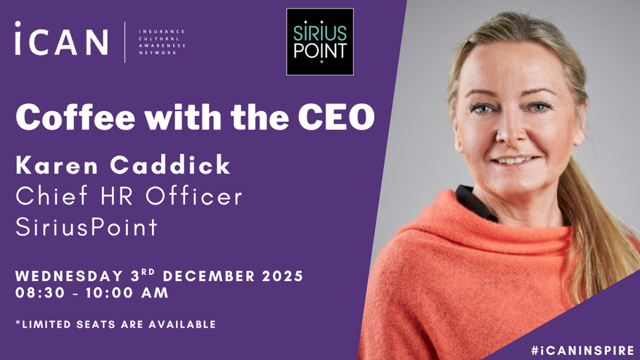 Join iCAN (Insurance Cultural Awareness Network) for our next Coffee with the CEO session on Wednesday 3rd December 2025, featuring Karen Caddick, Chief Human Resources Officer at SiriusPoint!